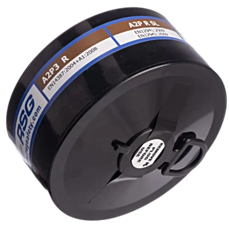 RSG A2P3 kombinált szűrőbetét – szerves gázok, gőzök és veszélyes részecskék ellen, műanyag házban, RD40 menettel.