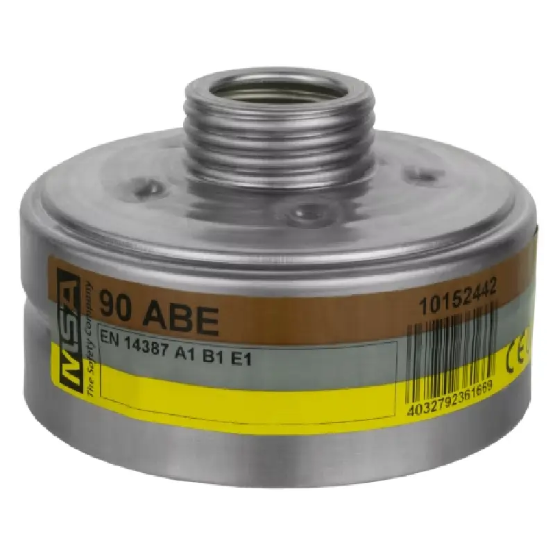 MSA 90 ABE aluminium házas szűrőbetét – szerves, szervetlen és savas gázok ellen, RD40 menettel.
