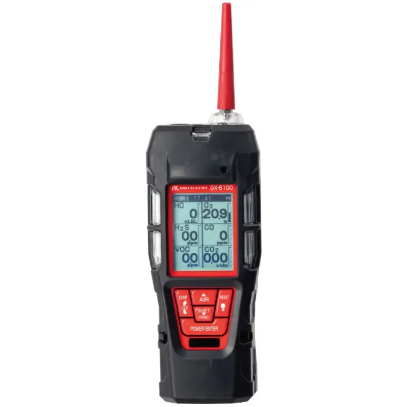 Riken Keiki GX-6100 hordozható detektor. Professzionális, beépített szivattyúval rendelkező akár 6 gáz egyidejű mérésére képes. Kiemelkedő pontosságú PID (fotóionizációs) szenzorral felszerelve alkalmas az illékony szerves vegyületek (VOC) alacsony koncentrációjának detektálására is.